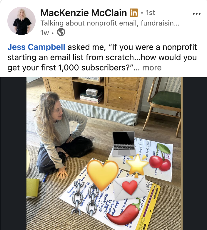 At one point I text her that her post was reaching the exact audience we wanted, in-house nonprofit leaders and fundraisers. 👏