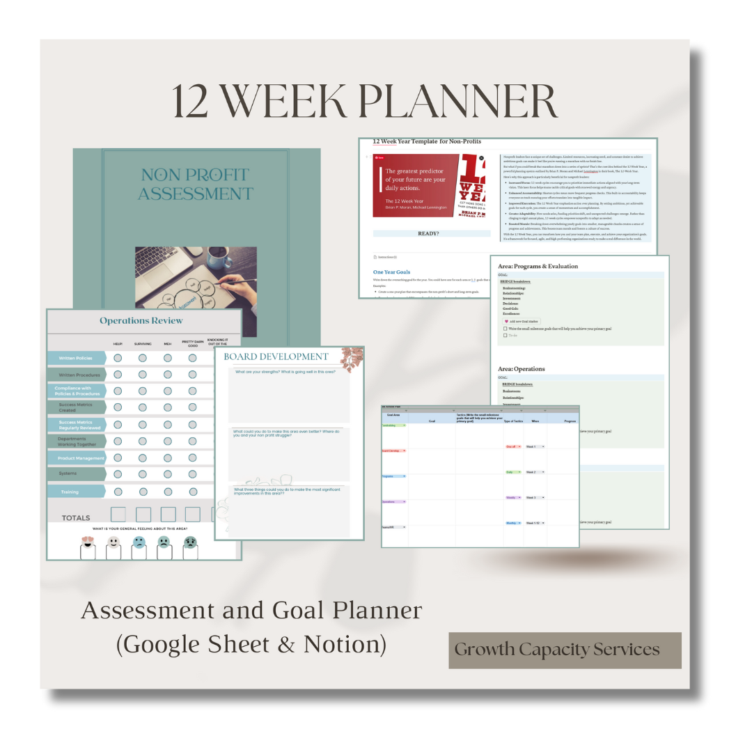 With the 12 Week Year planner for Non Profits, gain clear direction and a focused framework to escape the chaos and achieve real impact. Define your priorities, create a roadmap for success, and finally see the progress you've been working towards. Shift from reactive to proactive, giving you the tools to anticipate challenges, strategically allocate resources, and achieve your long-term vision. Based on the books: 12 Week Year and Big Goals